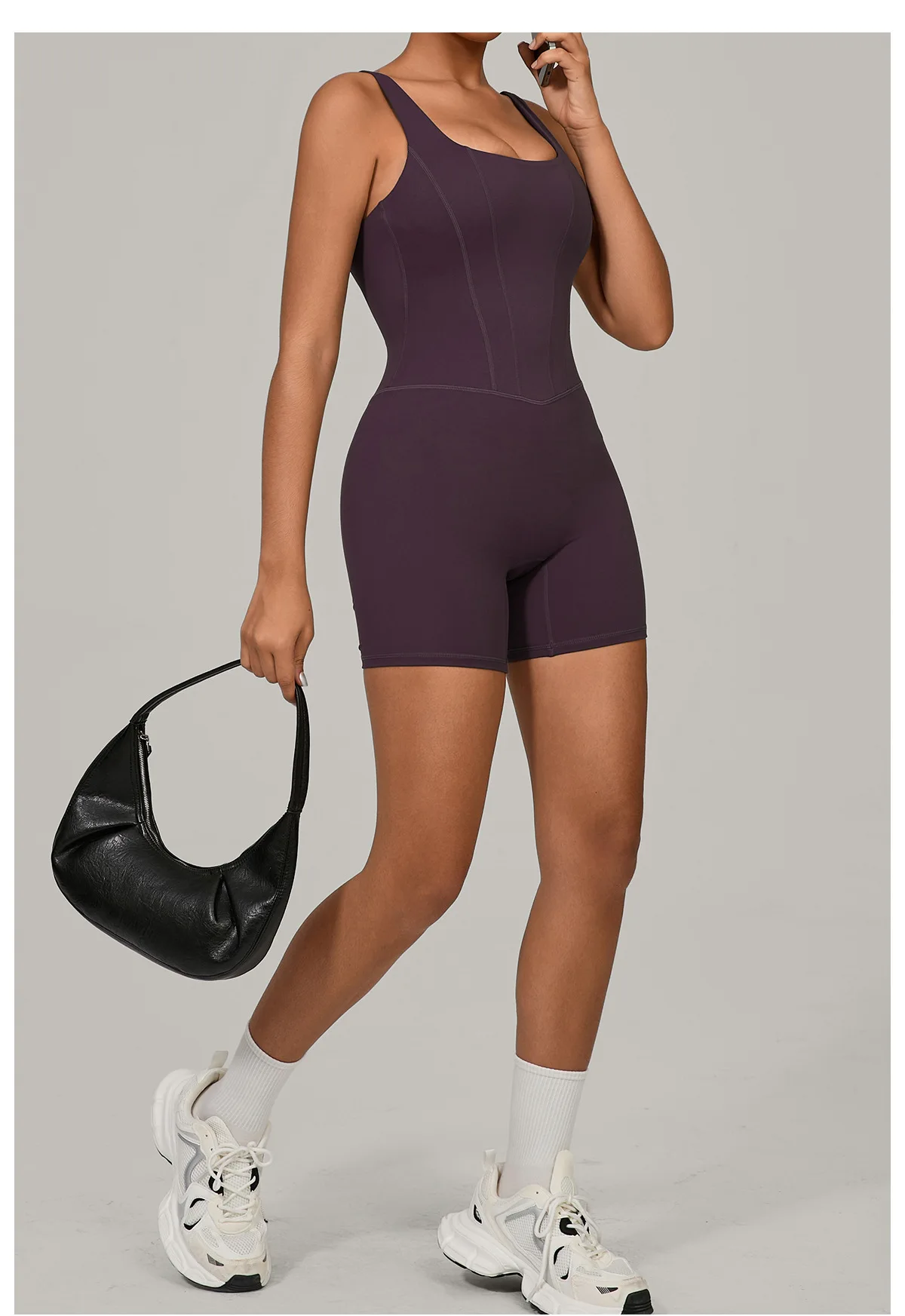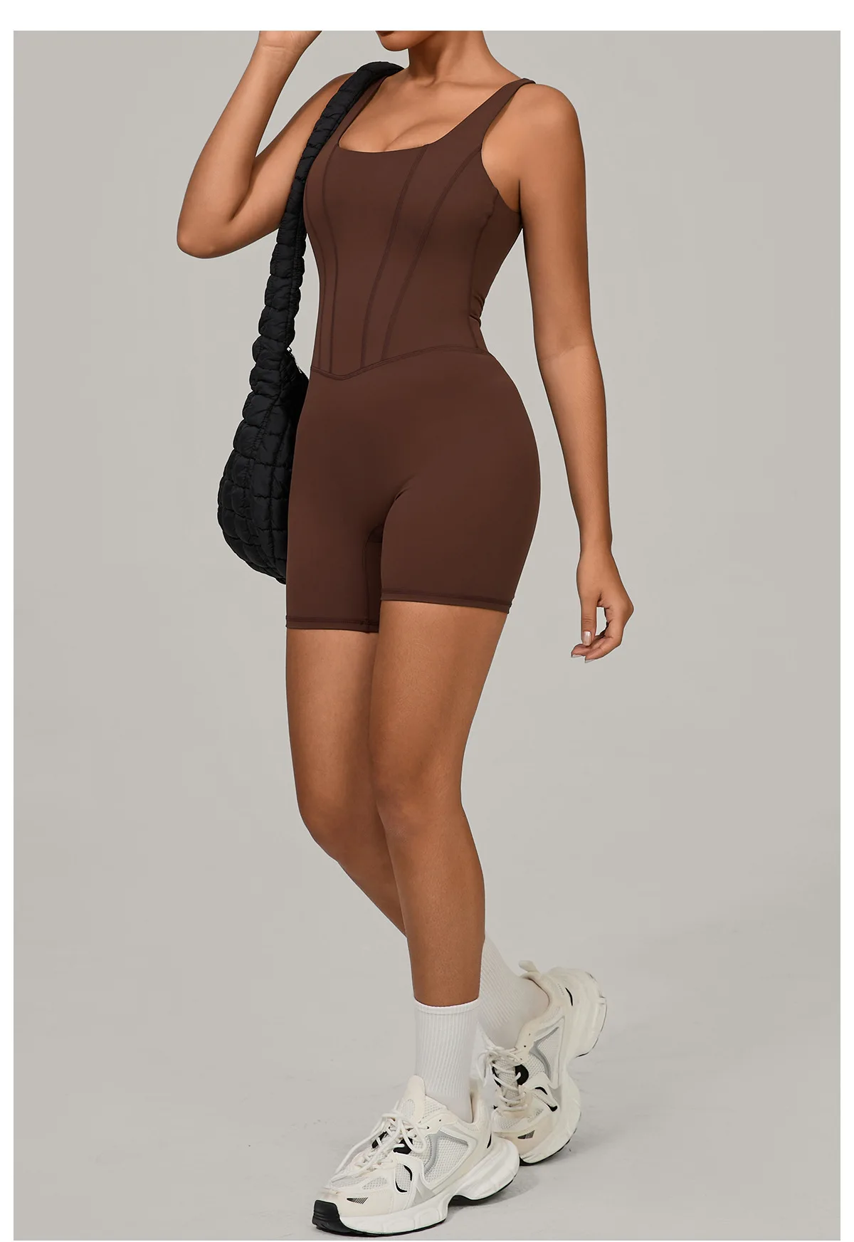 Women's Tracksuit Backless Workout Rompers Top Bodycon One Piece Halter Sleeveless Bodysuit Short Jumpsuits Push Up Sportswear